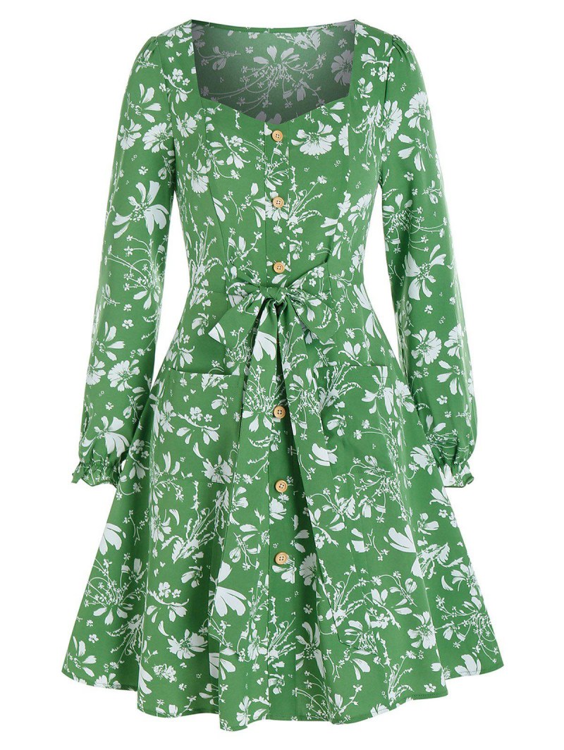Ditsy Floral Pockets Mock Button Mini A Line Dress