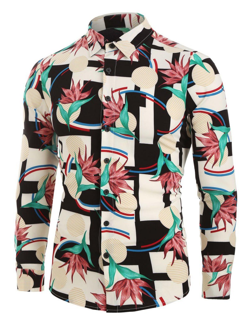 Flower Geometric Print Button Up Shirt