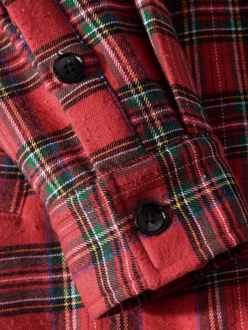 Plaid Pattern Pocket Fleece Hooded Jacket