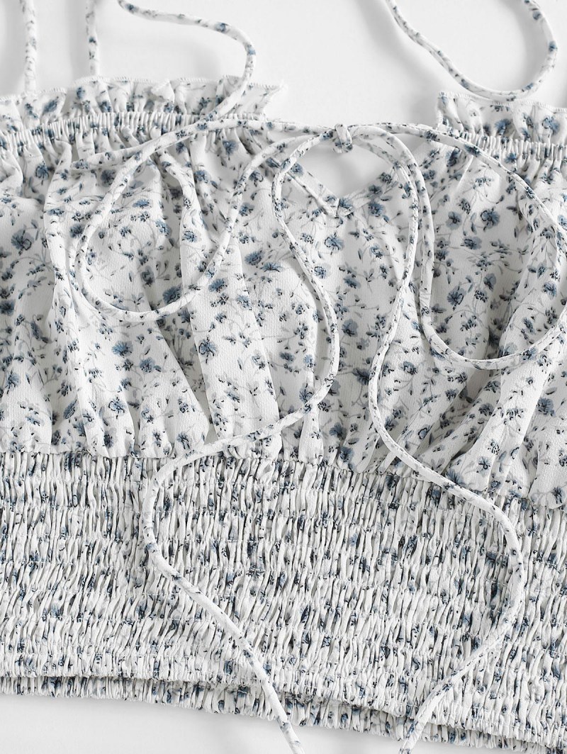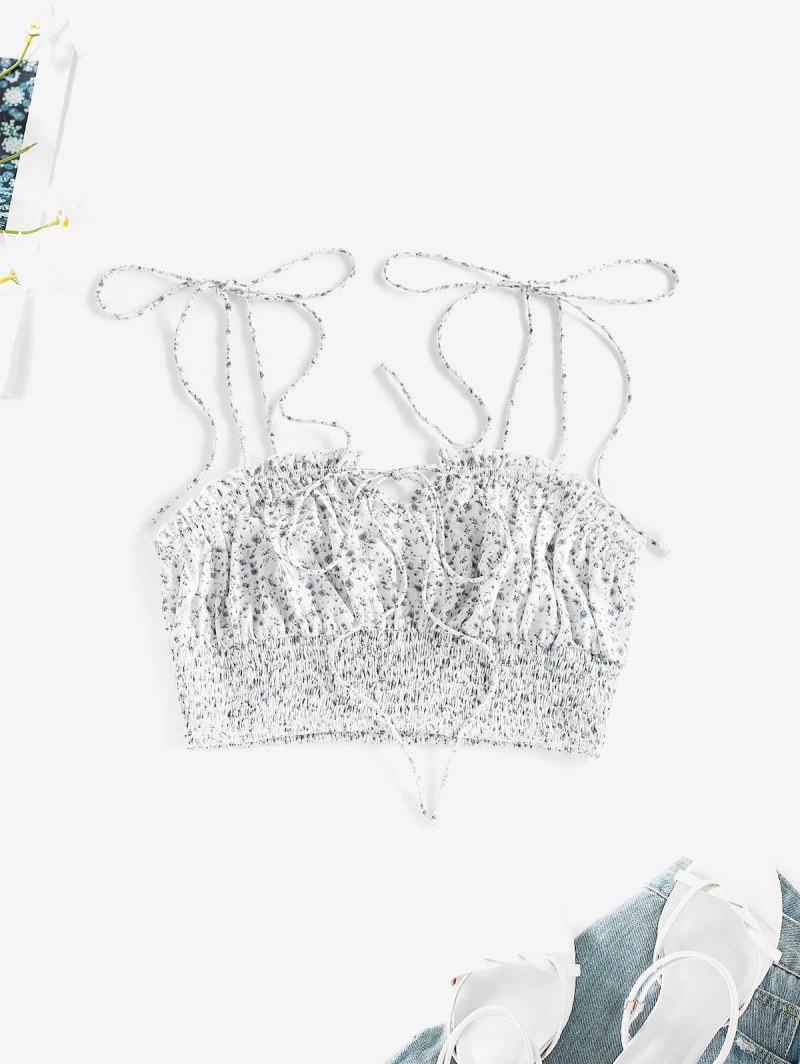 Tie Shoulder Smocked Waist Ditsy Floral Cami Top